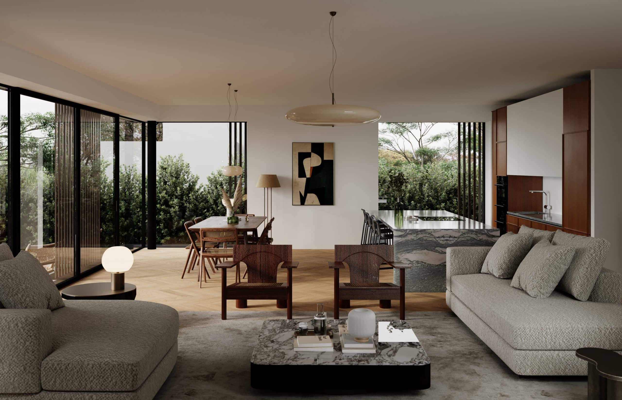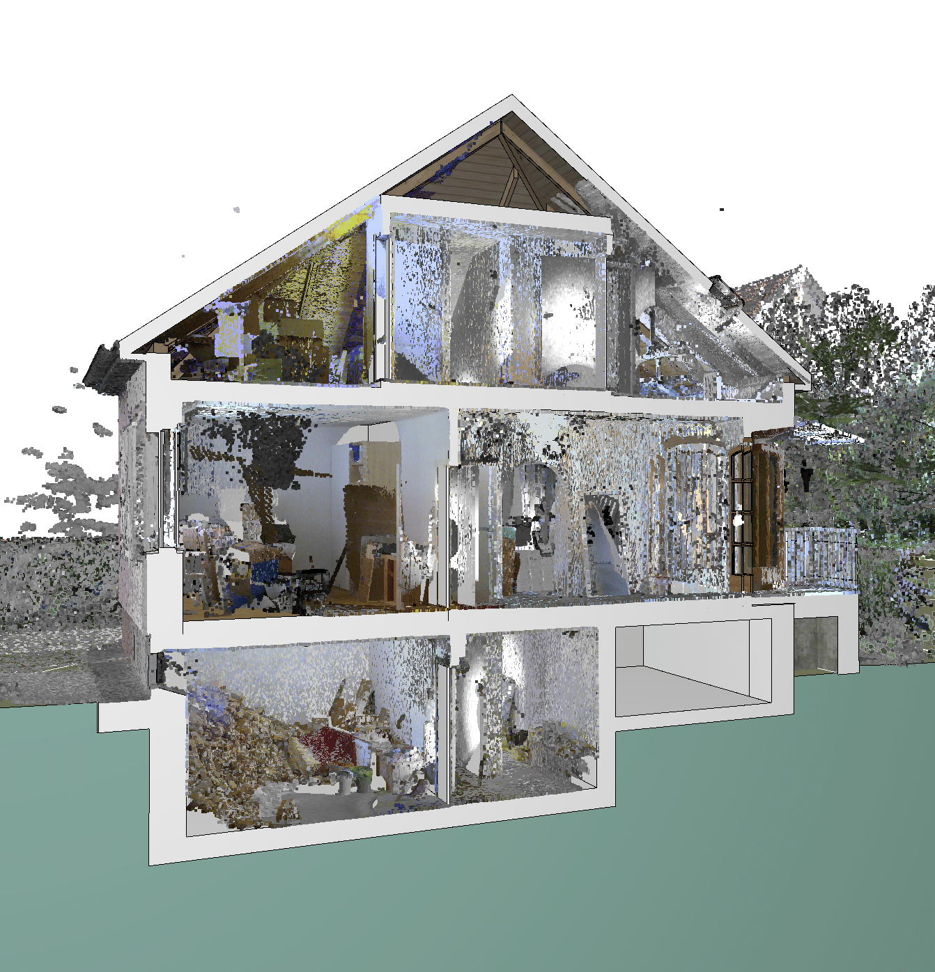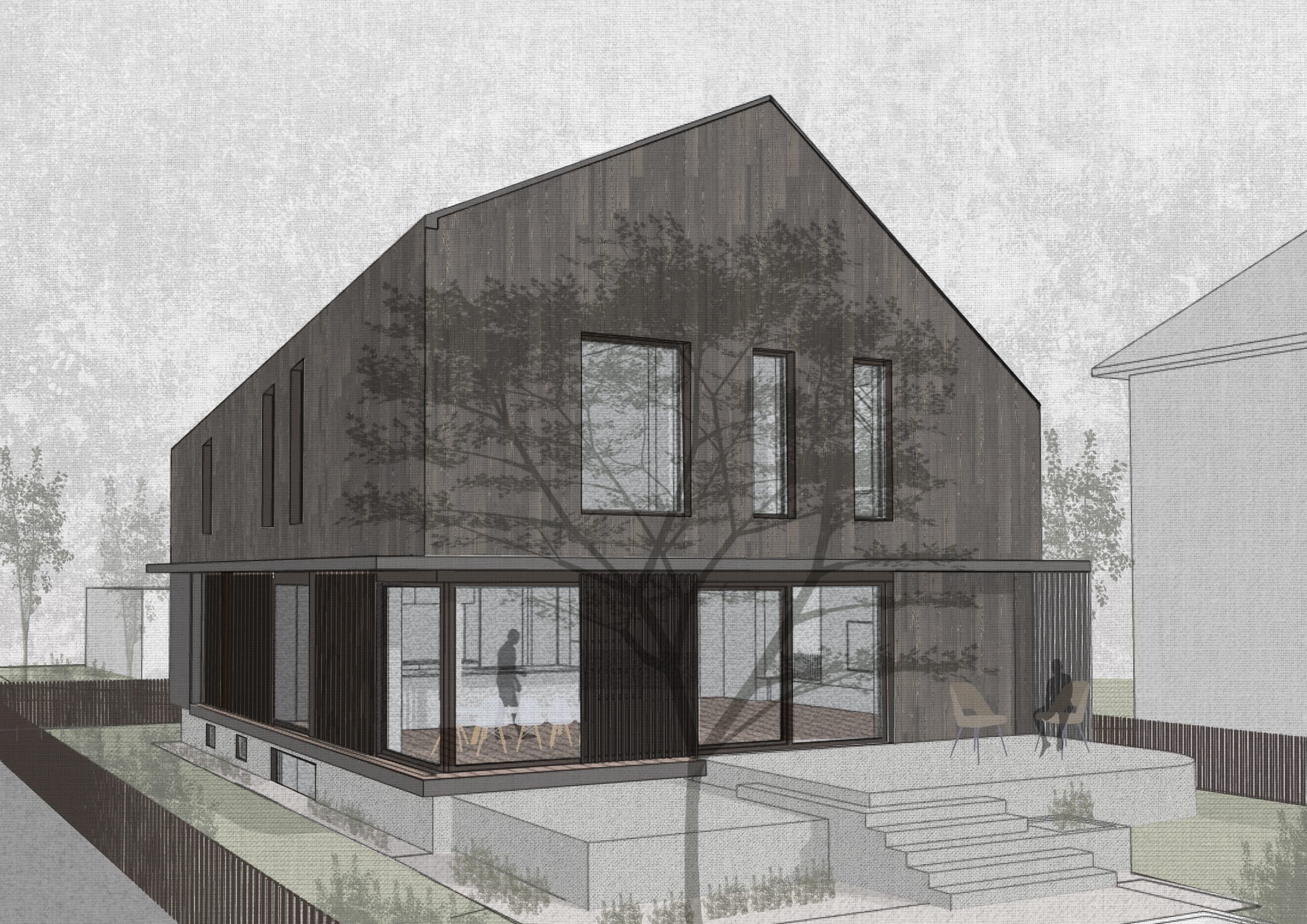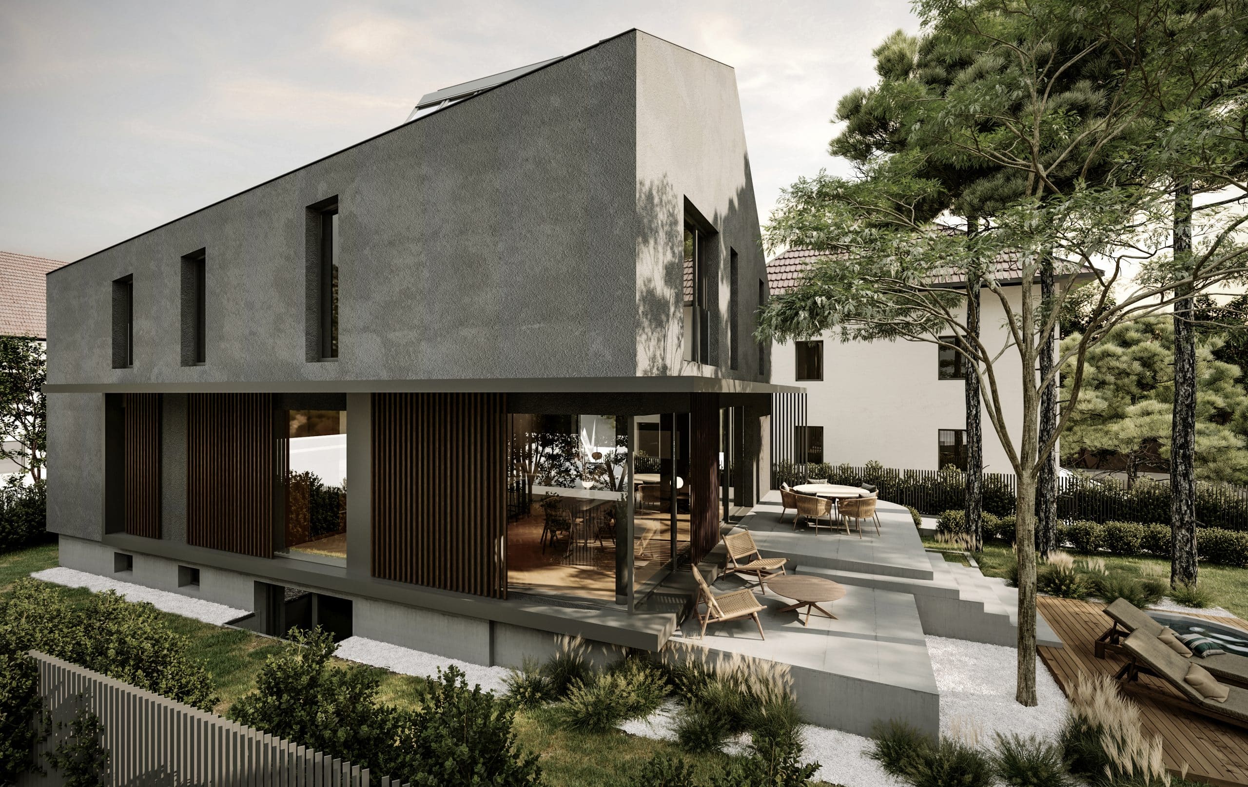 Bei diesem Entwurf wurde ein Bestandsgebäude behutsam revitalisiert. Grundlage bildete eine präzise Bestandsaufnahme mittels unseres 3D-Laserscanners, auf der der neue Entwurf aufbaute. Das geneigte Dach wurde an die zulässigen Gebäudehöhen angepasst, um auch das Dachgeschoß optimal nutzbar zu machen. Großzügige Schiebeelemente öffnen den Wohnbereich zum Garten und schaffen einen fließenden Übergang zwischen Innen- und Außenraum. Durchdachte Grundrisse, lichtdurchflutete Räume und eine hochwertige Innenausstattung formen ein behagliches Zuhause mit hohem Wohnkomfort.